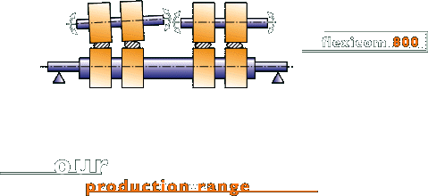 4 upper rollers mounted on a shaft devided into two parts. This special construction enables a regular forward motion of the fabric in every milling channel, even with lo pressure between the rollers. ![]() | |||
